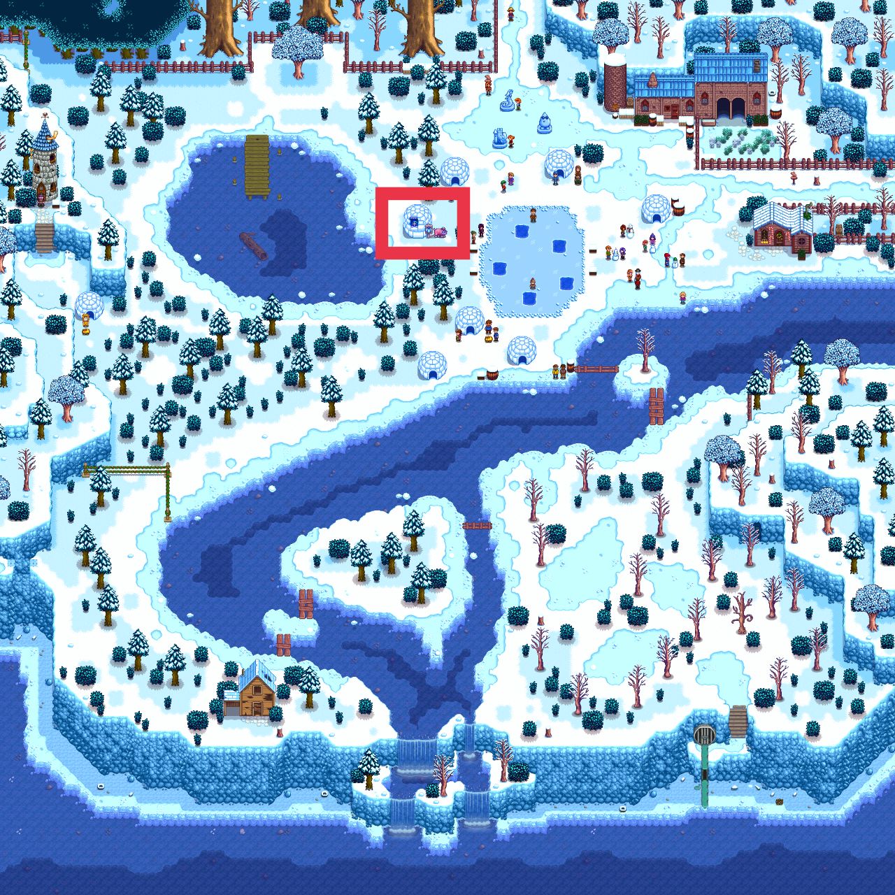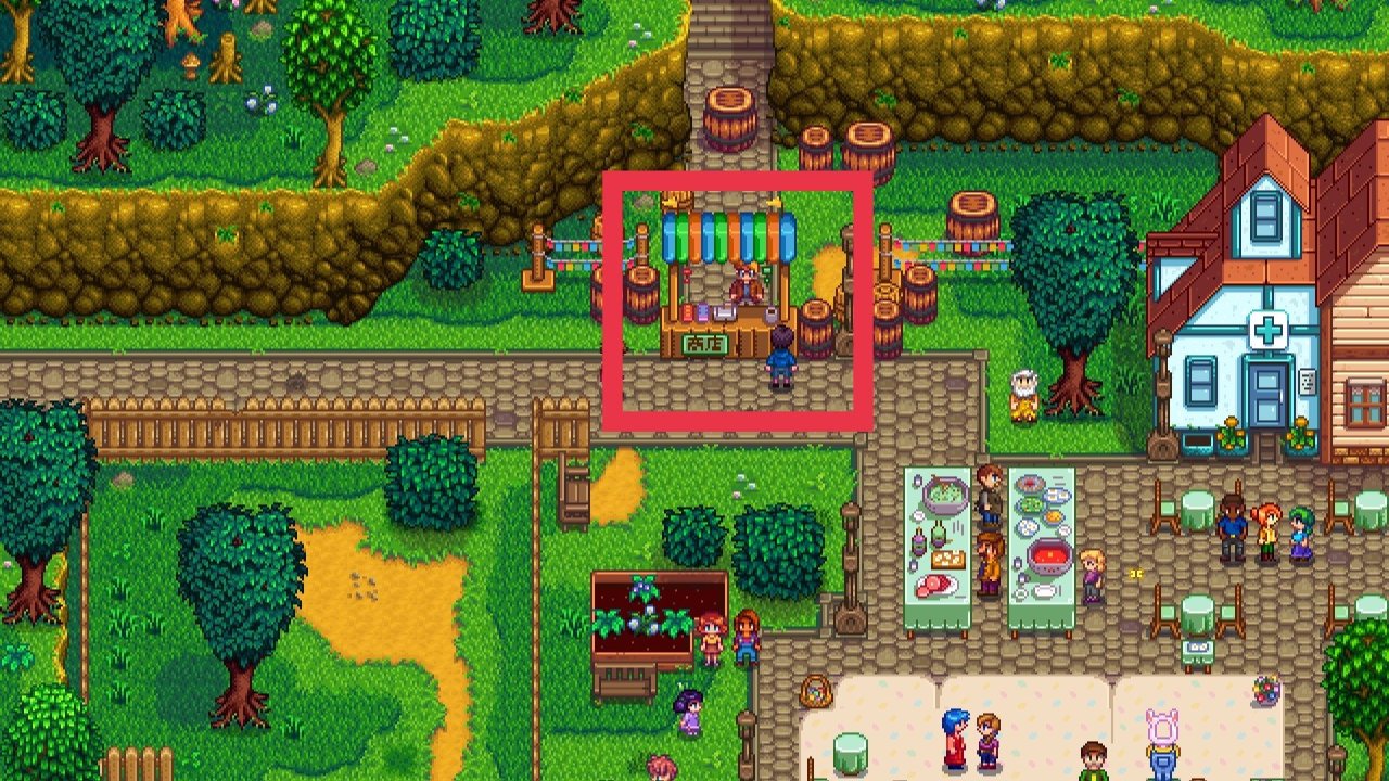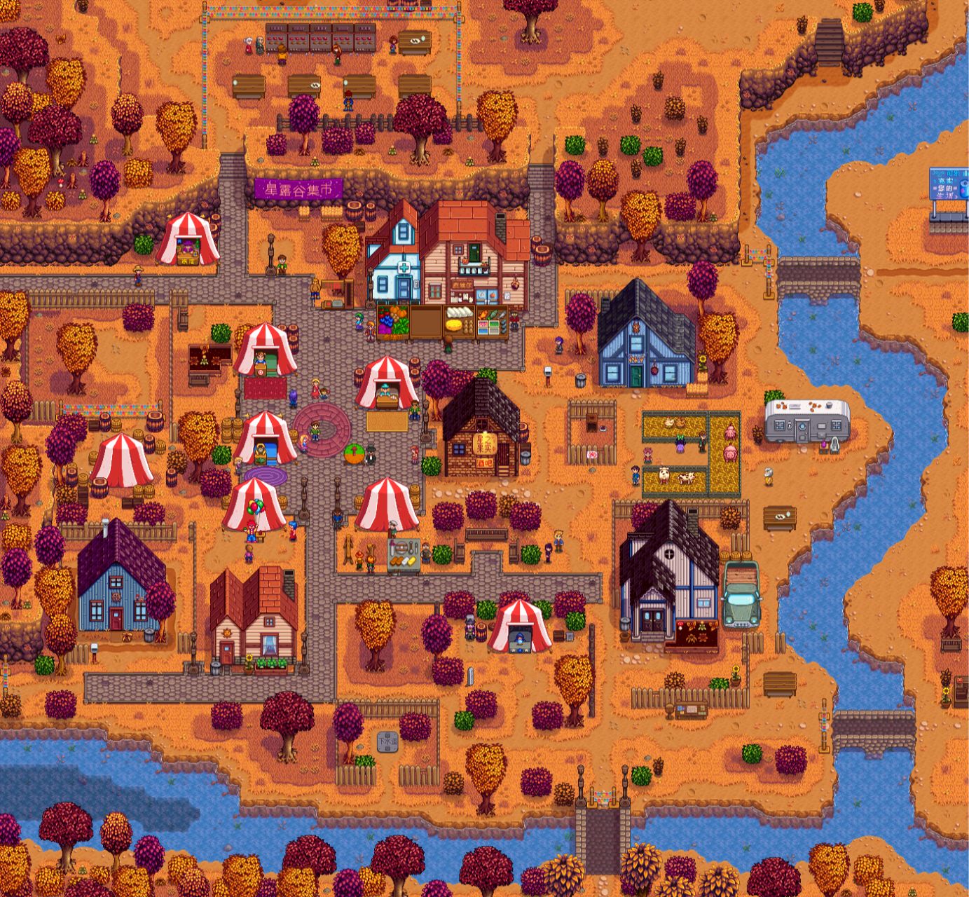 舉辦地點:小鎮區域(在農場一直往右走即可到達小鎮區域,實在不清楚在哪的可以看下方紅色標記圖,跟着走就能到達小鎮區域)