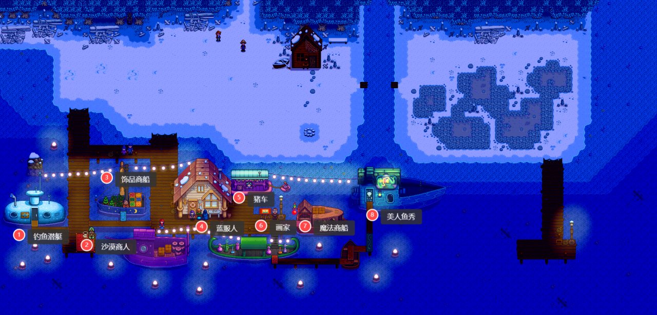 節日介紹:在該節日下,豬車(旅行商人)會出來擺攤,具體位置在下圖紅色標記處