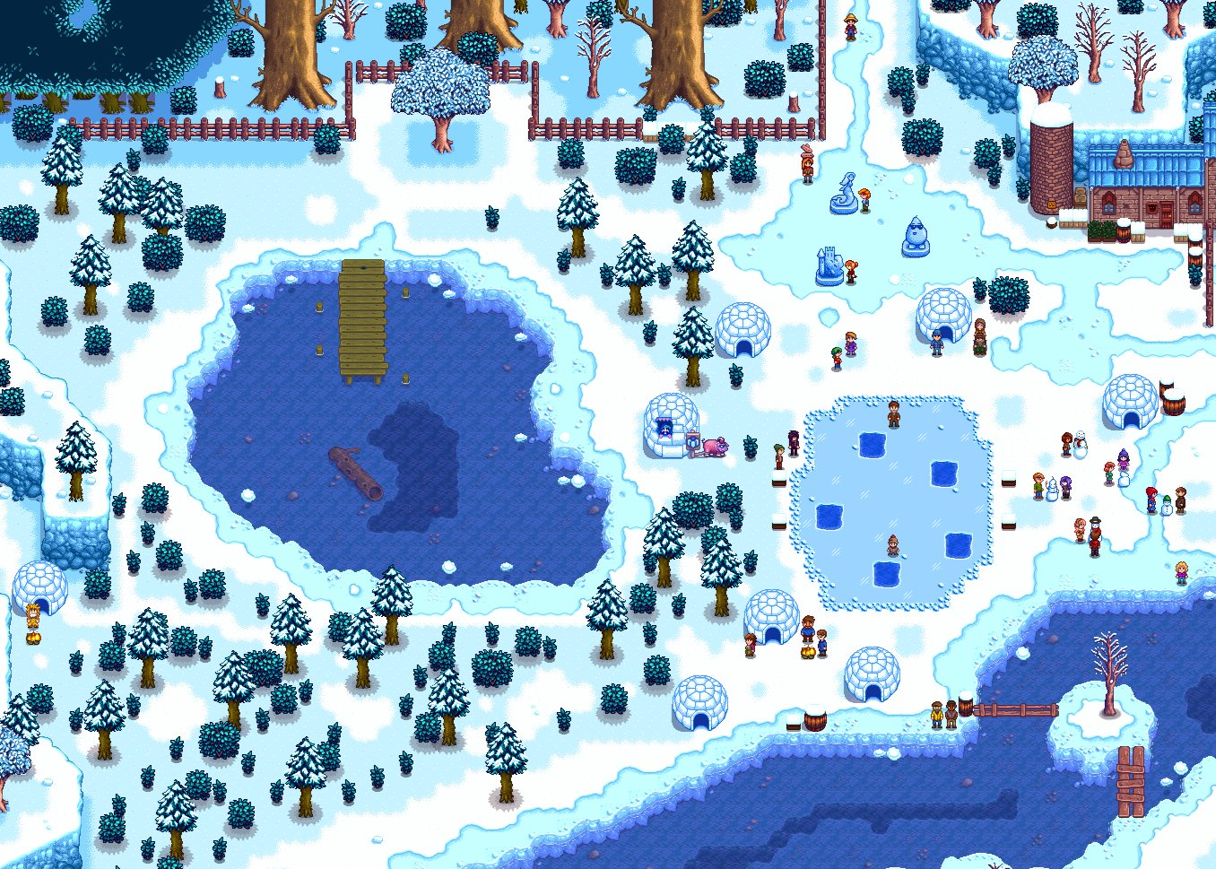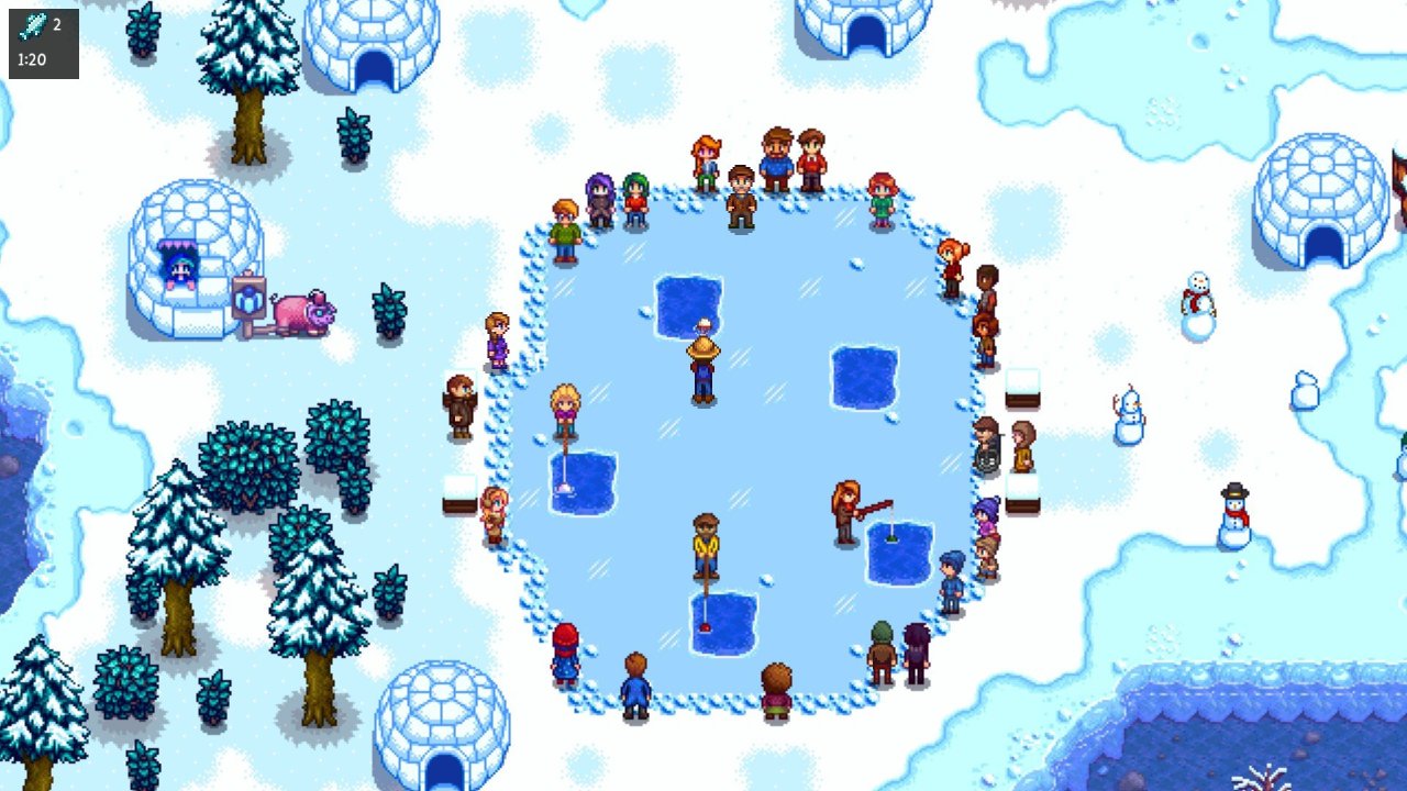 之後該節日的主要活動就是冰釣比賽,我們與劉易斯交談即可選擇是否開始,我們會與幾位村民一起參加冰釣比賽,時間爲兩分鐘,我們至少要釣到五條魚才能獲勝,否則就輸了,第一次獲勝時,獎勵爲水手帽×1、精裝旋式魚餌×1(釣具)、倒刺鉤×1(釣具)、磁鐵×1(魚餌),之後重複獲勝的話獎勵會變成一張兌獎券,比賽結束後會自動回到農場,時間爲晚上10.