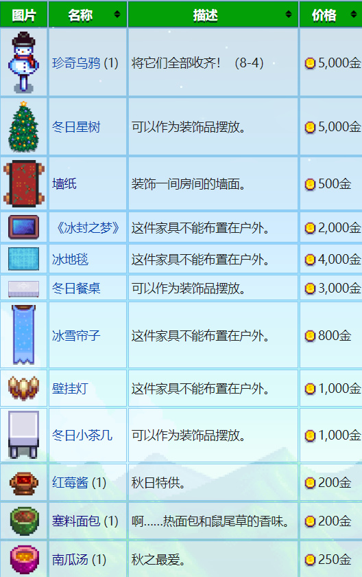 (老皮知道個別玩家肯定會忘記帶,於是專門在這個節日把楊桃的售價抬到3000金,你又需要,那就只能跟他買了,其餘一些物品基本都是傢俱和裝飾物,喜歡的可以買)