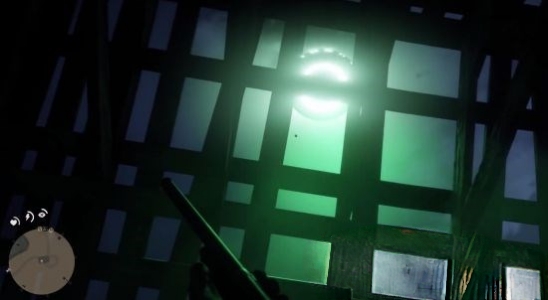 拾取文件之后在凌晨2点再次回到这个小屋,你就能看到一个绿色的UFO。