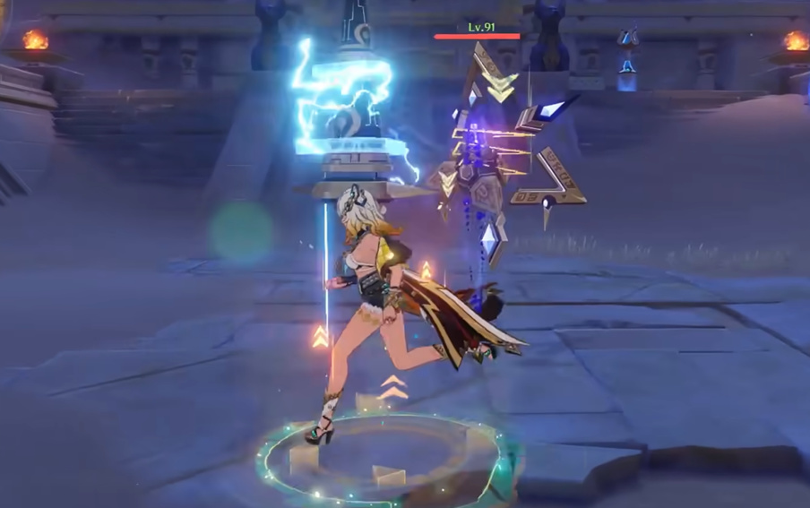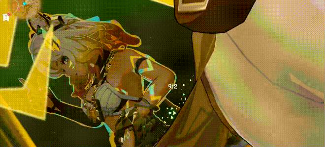 在實戰中,當希諾寧的採樣器染色數量小於2的時候,希諾寧會進入輸出模式。此時希諾寧釋放元素戰技後,會給普攻施加9秒鐘的“巖元素附魔”狀態,並且希諾寧的元素爆發“豹烈律動!”也會變成一個大範圍羣體輸出技能,釋放大招後會震地三次,造成巖元素傷害。