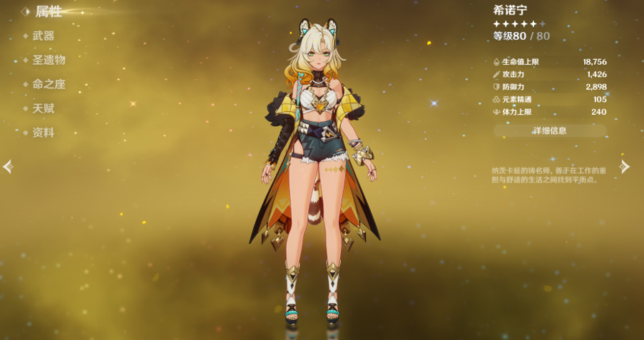 而如果看XP的話,希諾寧就更值得入手了。她不僅時納塔唯一指定貓貓,顏值很高,而且她的動作設計也很好看。