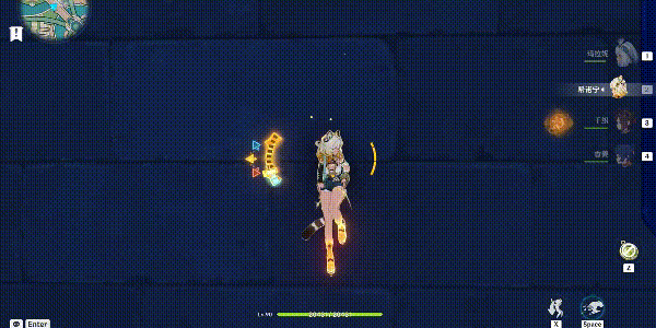 在夜魂狀態下她的高移速+快速攀爬能力以及懸停懸崖的能力,可以讓原攝玩家進行的拍攝。比如當玩家在希諾寧停頓時同時按下空格和S鍵,那麼希諾寧就會以一個非常帥氣的姿勢落地。
