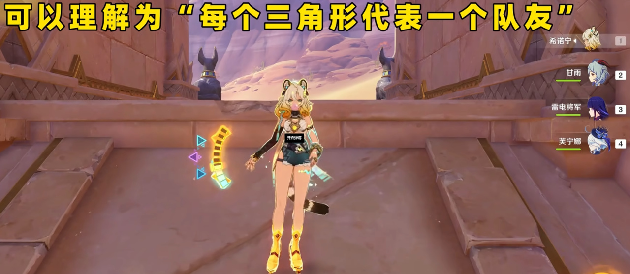 如何判斷希諾寧是否給敵人減抗,就看角色腳下是否有踩着一個蹦迪光環,如果有就意味着減抗效果正在生效。需要注意的是,火、水、雷、冰元素需要希諾寧的元素戰技來激活減抗,而巖元素只需要希諾寧處於“夜魂狀態”下即可被激活。