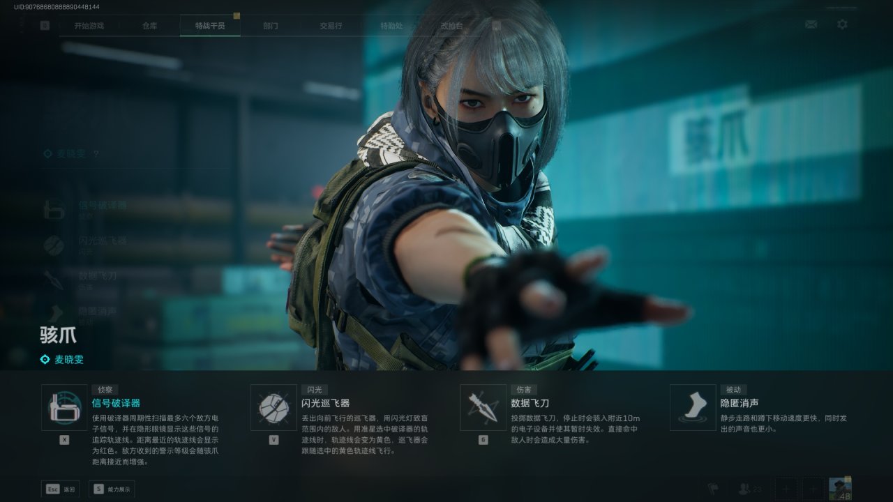 數據飛刀也可以駭入附近電子設備,讓部分幹員技能無效,也可以藉此探測周圍是否有人。