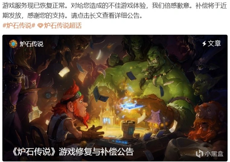 四、暴雪《爐石傳說》國服再發補償公告:遊戲服務現已恢復正常,送 50 包卡牌包