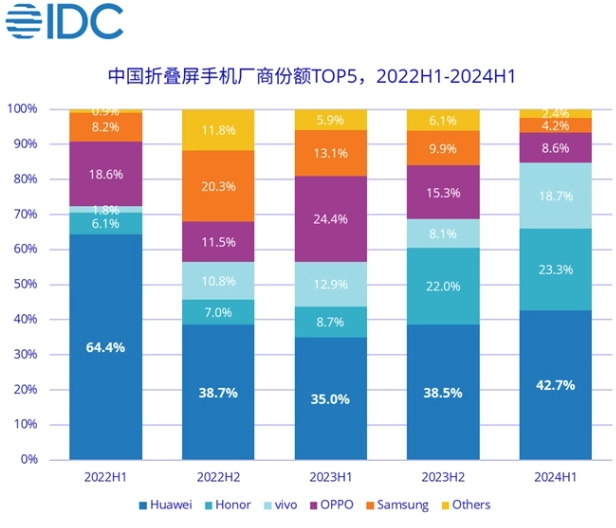 • 據媒體報道,市場調研權威機構CINNO Research發文稱,時隔46個月,2024年8月華爲手機在國內市場的銷售額成功超越蘋果。IDC數據顯示,2024年上半年,華爲以17.5%的市場份額再度成爲中國智能手機市場的出貨量冠軍。