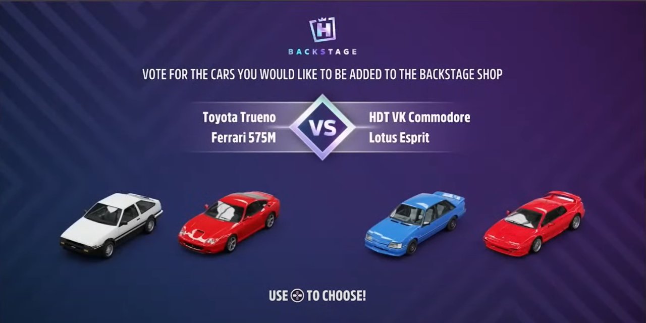 作爲添加後臺通行證和社區投票的首周,目前已有 6 輛限定車輛加入後臺,而本週的投票名單爲: