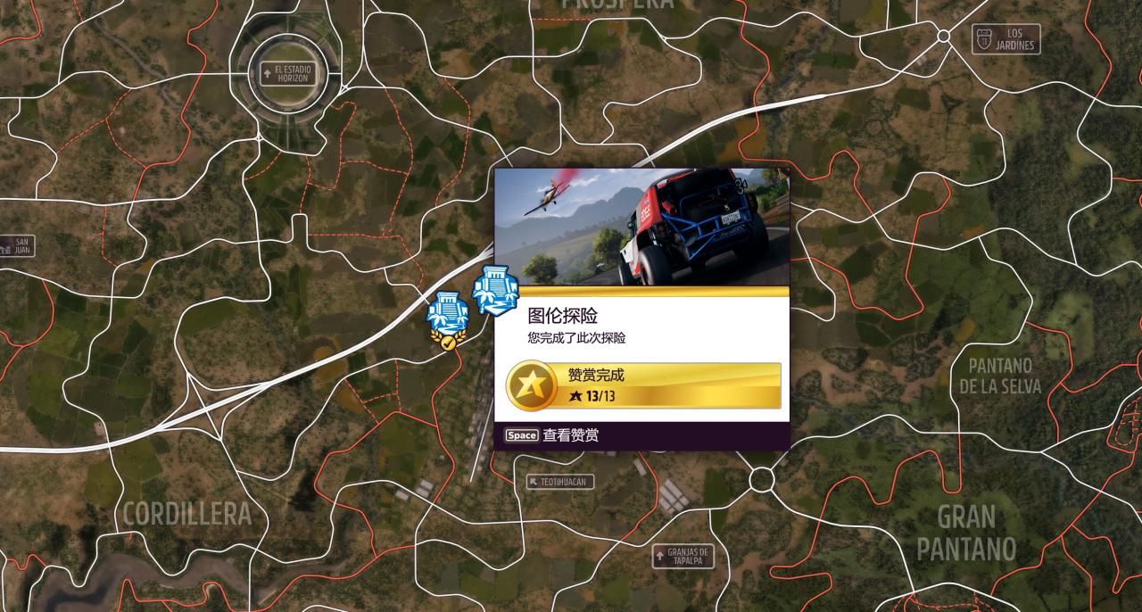 在地圖篩選器中選擇“表演賽與探險”,找到高速旁邊的圖倫探險並完成即可。