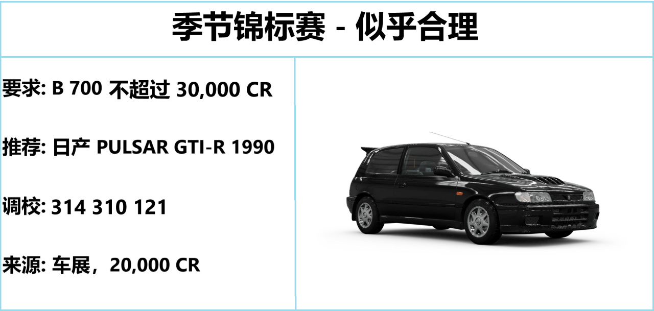拉力特供的日產 PULSAR,抓地力不錯但起速不太行,恰好符合比賽要求(。