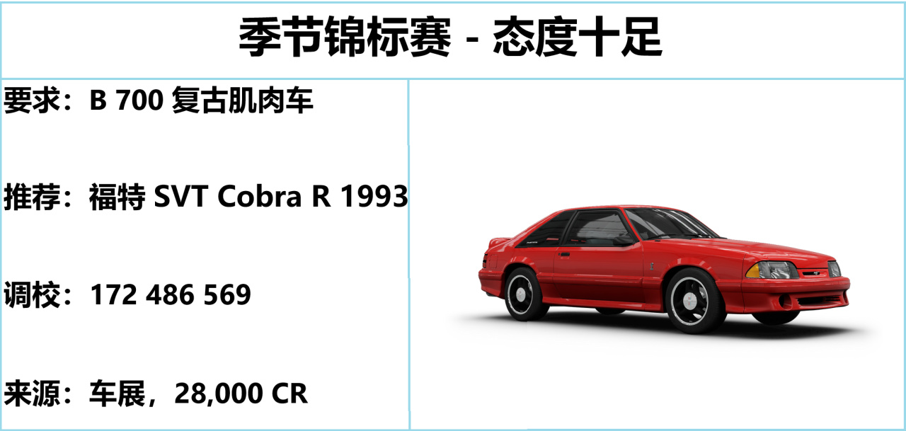 1. 尋寶賽 線索:駕駛 1993 款福特 SVT Cobra R 贏得 1 場直線加速賽