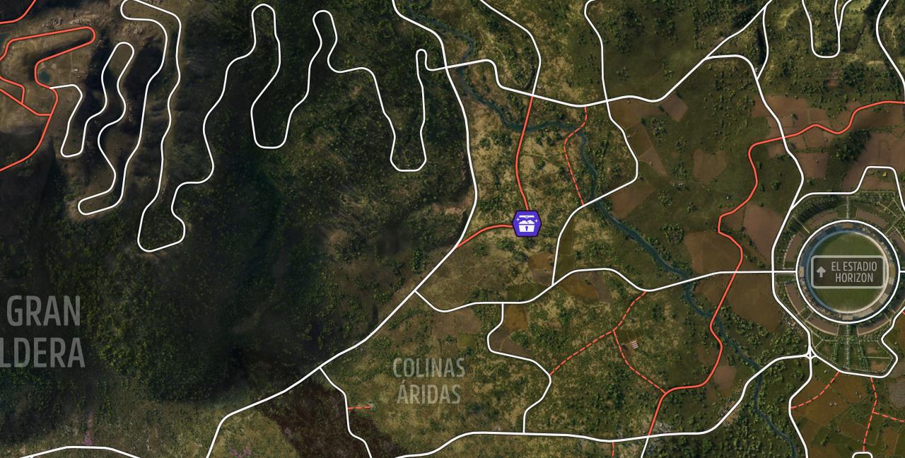 寶箱位置如上圖所示,位於體育場左側的野地、死火山的盤山公路旁邊。