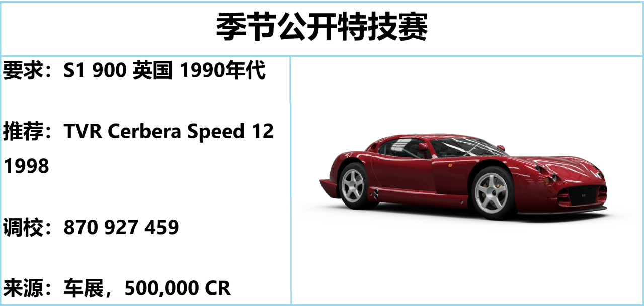 本週的特技要求一致,統一用這輛 TVR Speed 12 來完成就行。