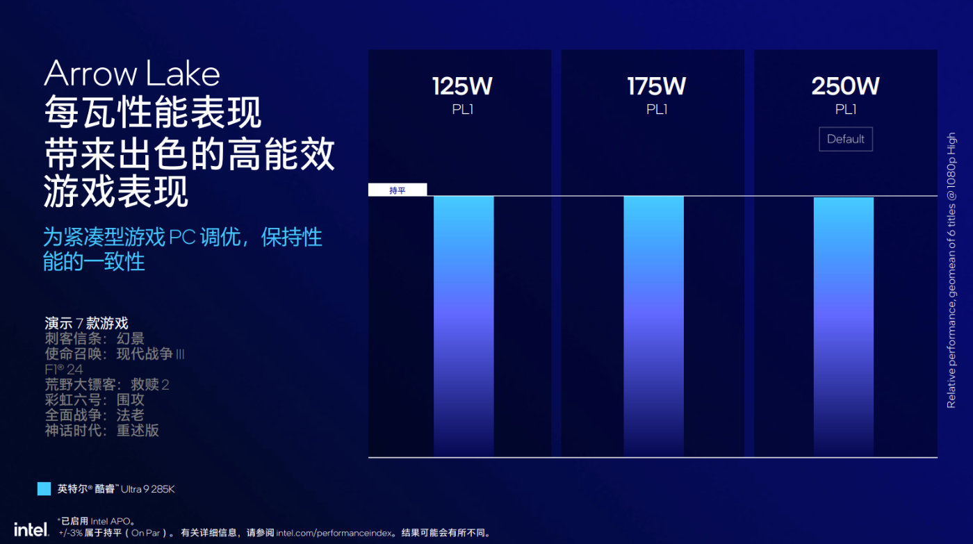 有意思的是,如果將PL1的250W功耗降低,酷睿Ultra 9 285K仍可以做到遊戲性能的一致性,這對追求機箱小型化的玩家而言是個好消息。當然酷睿Ultra 9 285K也並非唯一選擇,酷睿Ultra 7和酷睿Ultra 5的表現也能更好的幫助創作者和遊戲玩家從性價比和場景出發進行搭建。