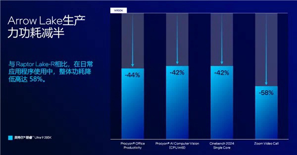 這都是非常切實的,也很符合用戶的迫切需求。最終按照 intel 的說法,它只需 14 代酷睿一半的功耗,就能得到相同的性能,能效比進步幅度非常喜人。
