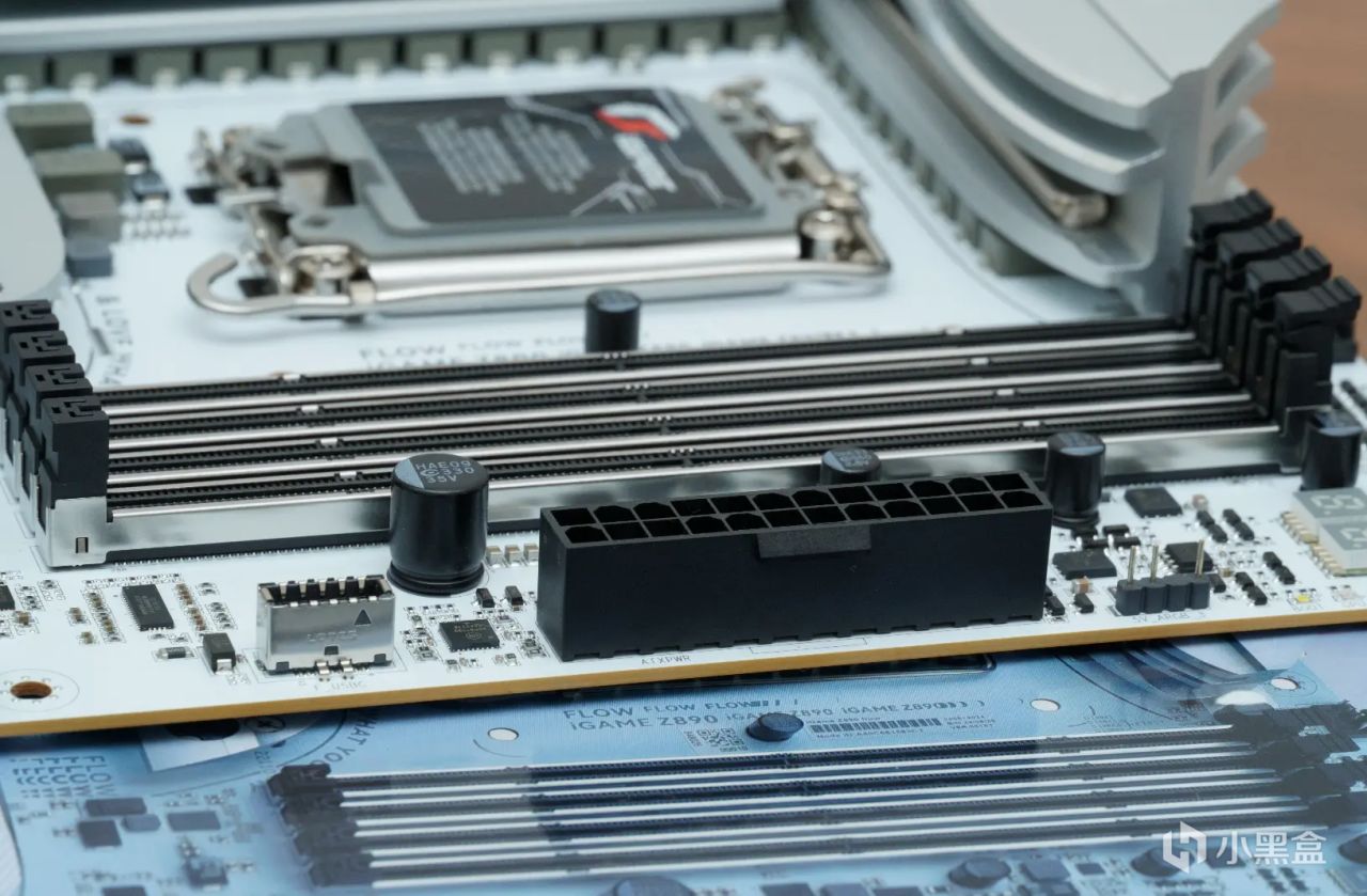 ▲看一個主板的做工和用料,首先肯定是要看它的供電部分,穩定的供電是所有的硬件穩定運行的保證。在CPU的供電上,iGame Z890 FLOW採用的是20+1+1相90ADrMOS供電設計,配合着雙8PIN的CPU供電接口,電力充足,即使作爲intel酷睿Ultra9-285K的座駕也絲毫不虛。