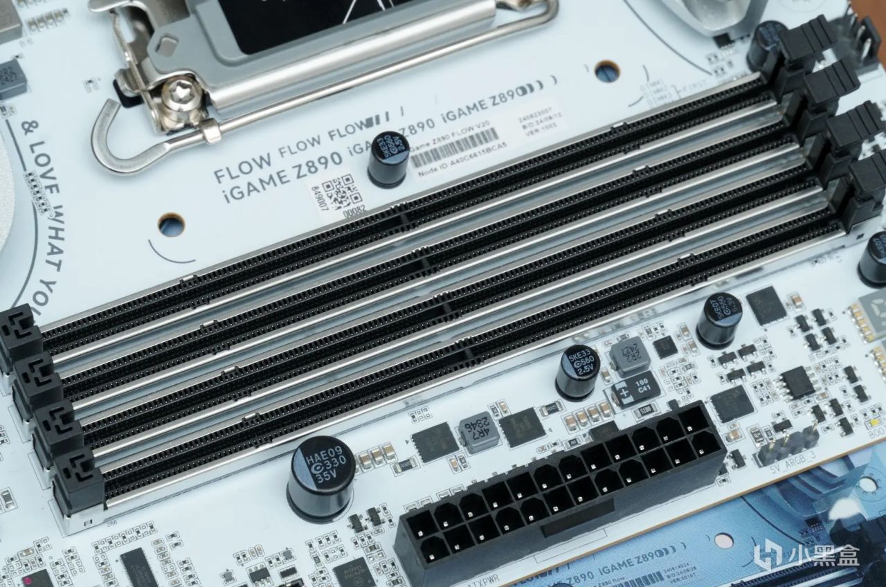 ▲內存方面,iGame Z890 FLOW的4個內存插槽也都進行了金屬加固,總共支持最大192GB的內存容量,至於內存的超頻能力我目前無法爲大家介紹,還得等性能測試解禁時才能說哈哈哈。