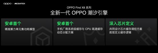 天極網從官方瞭解到,Find X8系列將首次實現輕薄手感、幀率穩定與續航持久的“不可能三角”共存,爲用戶帶來前所未有的使用體驗,這得益於OPPO與MediaTek深入芯片底層共同研發的天璣9400以及OPPO自主研發的潮汐引擎。