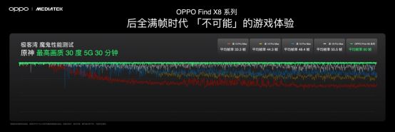 在大型遊戲中,Find X8系列能夠實現至多8.24%的更高能效,爲用戶帶來更加流暢、穩定的遊戲體驗。