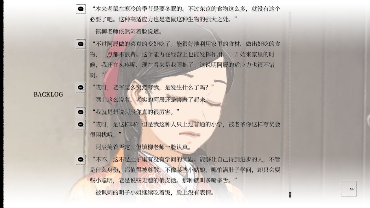 絮絮叨叨一堆,总之这是一部值得人静下心慢慢去看、去听的视觉小说,而且本人比较推荐一口气读完吧。感谢濑户口老师的温柔,能在结尾看到风腐症法律修订推行,看到天间武雄与明子小姐厮守。
