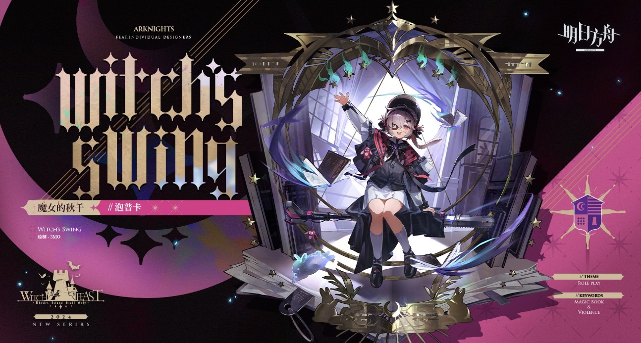 該次活動咱粥又推出了以“魔女”爲主題的幾款系列皮膚:鐧-暗月的影子、泡普卡-魔女的鞦韆等