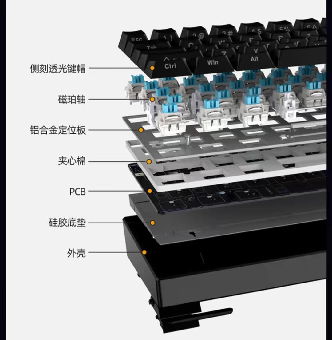 磁珀轴 黑/白正刻ABS键帽 夹心棉+低棉填充