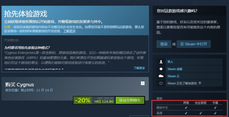 爲何要採用搶先體驗這種模式?“Cygnus Enterprises是一款全新的、跨遊戲品類的遊戲。它以一種前所未有的模式結合了動作類角色扮演遊戲(ARPG)和基地管理的元素。我們希望在開發初期邀請玩家體驗這個遊戲,聽取他們對這個遊戲的看法,以便我們能夠對遊戲體驗進行有意義的改進。”這款遊戲的搶先體驗狀態大約持續多久?“我們預期會在搶先體驗階段持續大約六個月,不過這個階段會根據玩家的想法的反饋進行靈活調整。”計劃中的完整版本和搶先體驗版本到底有多少不同?“Cygnus Enterprises的搶先體驗版本只是一個開始。在正式發佈時,我們計劃在以下幾個方面擴展遊戲: