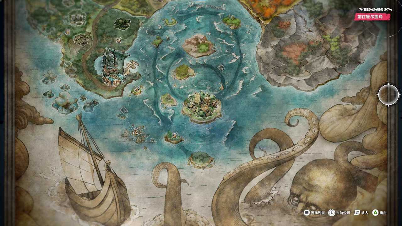 還有值得注意的是這次大世界地圖的畫面設計,用不同的色彩區分開了我們所需要探索的區域。在小地圖的設計方面,無論是處於王國中央的王都,還是下面海面上的小島維爾加島,還有其他地區的設計都會給人眼前一亮的感覺。打破了女神異聞錄系列侷限於一個城市或一個區域的傳統地圖探索模式,讓玩家可以更多的去體驗不一樣的風景。