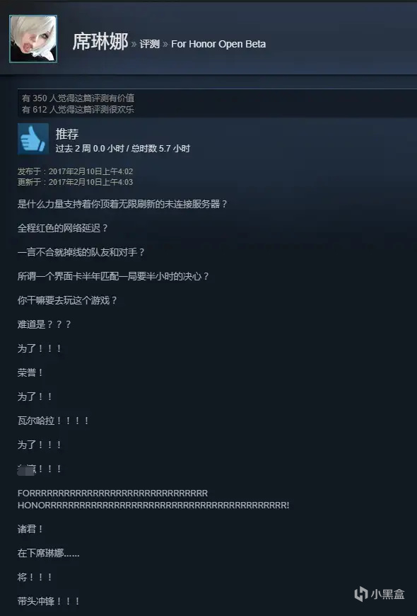 虽然由于种种原因,荣耀战魂的热度始终不是很高,在黑盒上也很少看到荣耀战魂的文章,但是还是有很多喜欢这个游戏的玩家,当别人问你为什么还在坚持玩这个游戏的时候,你的回答是......