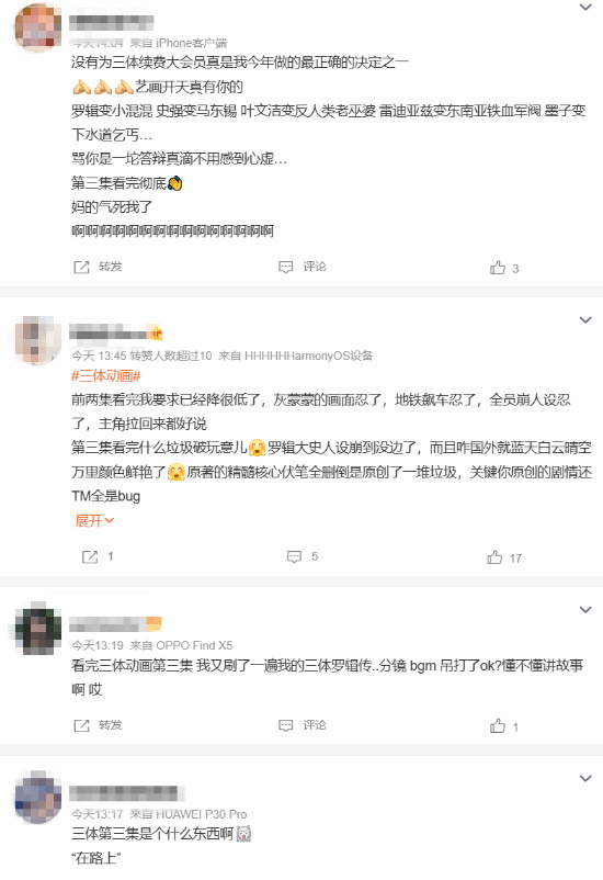 《三体》动画第三集于昨日正式上线,然而一经推出后动画的口碑直线下降。