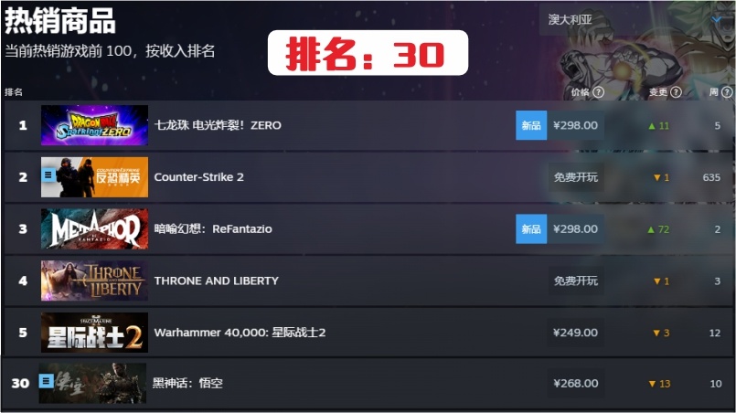21.澳大利亞第30名,連續在榜時間10周