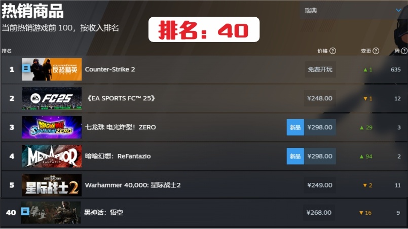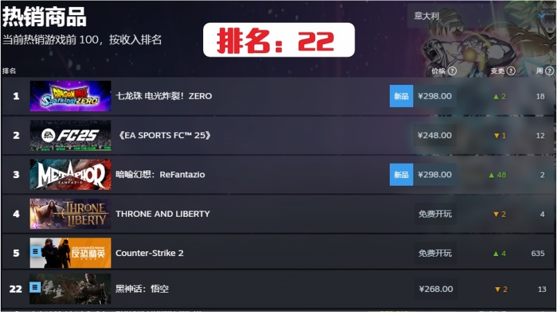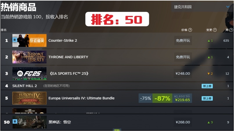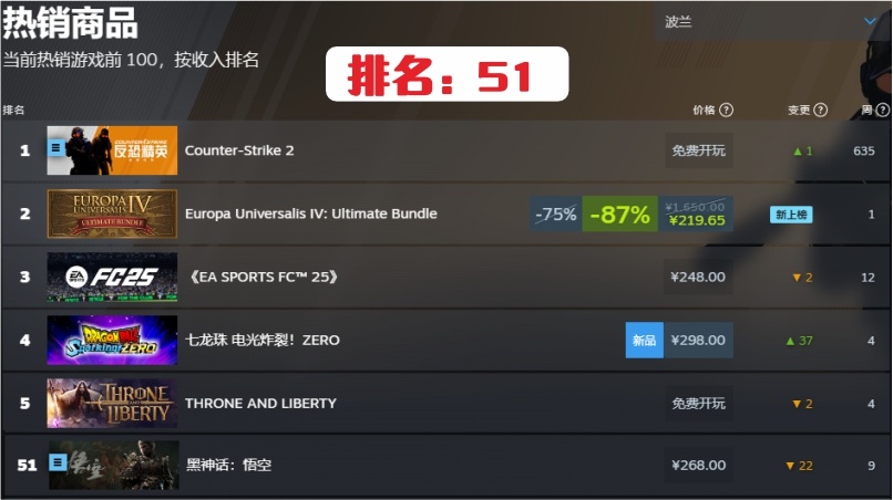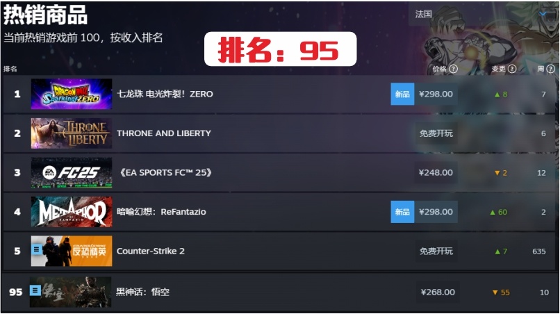 18.法國第95名,連續在榜時間10周。快掉出steam統計榜了。
