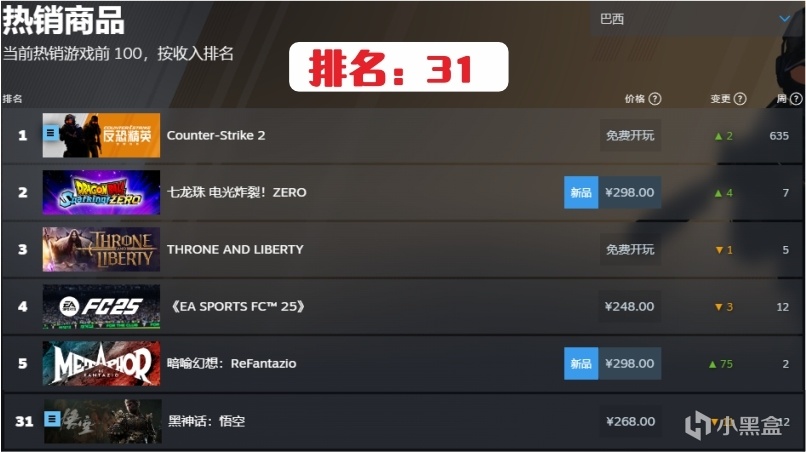 9.巴西第31名,連續在榜時間12周