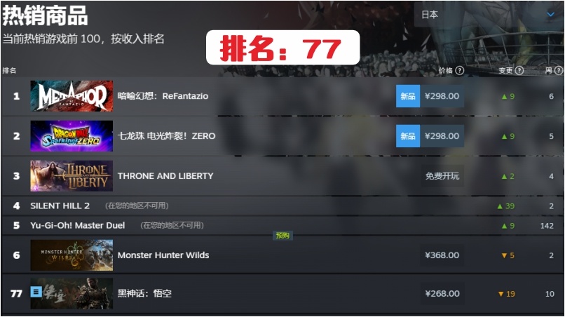 16.日本第77名,連續在榜時間10周