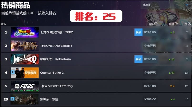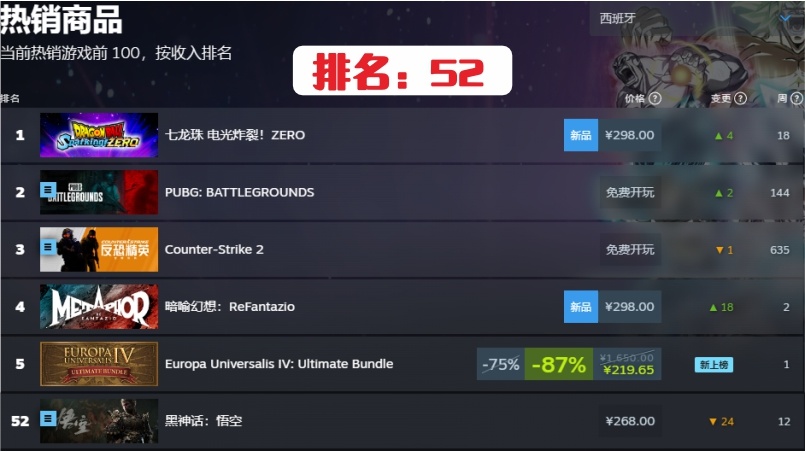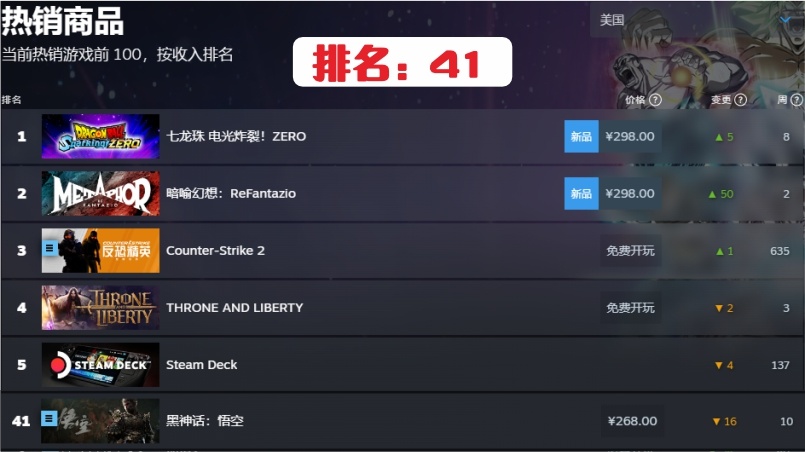 在說《黑神話:悟空》排名前得先提一下,遊戲科學目前已憑藉這款遊戲,在steam平臺上拿到了單機買斷制遊戲的銷售總額第一名,目前在steam平臺銷售總額在10億美元左右,約合人民幣70億。短短不到兩個月就超越衆多發售已久的遊戲銷售額。同時在steam平臺銷售份數約在2110萬份左右,而如果加上其他平臺,可能超2500萬份。