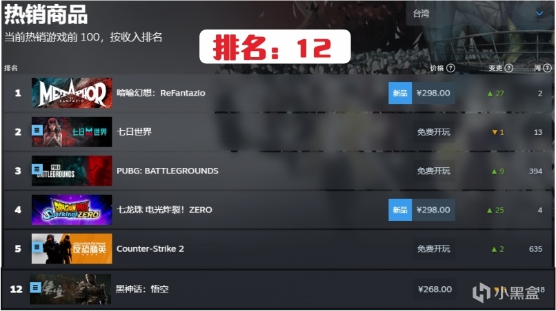 6.中國臺灣第12名,連續在榜時間18周