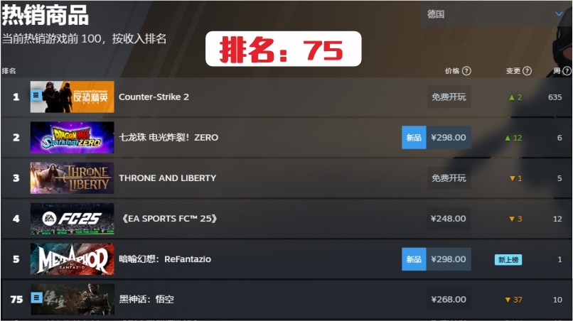 10.德國第75名,連續在榜時間10周