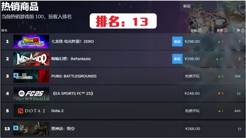 20.泰國第13名,連續在榜時間11周