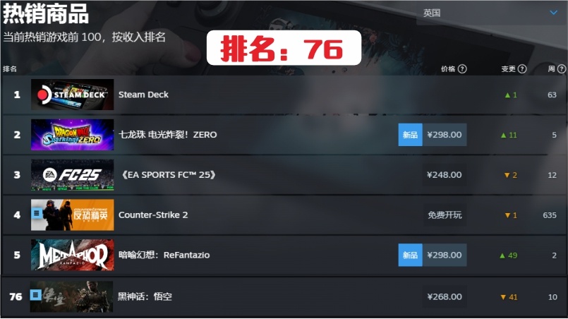 26.英國第76名,連續在榜時間10周