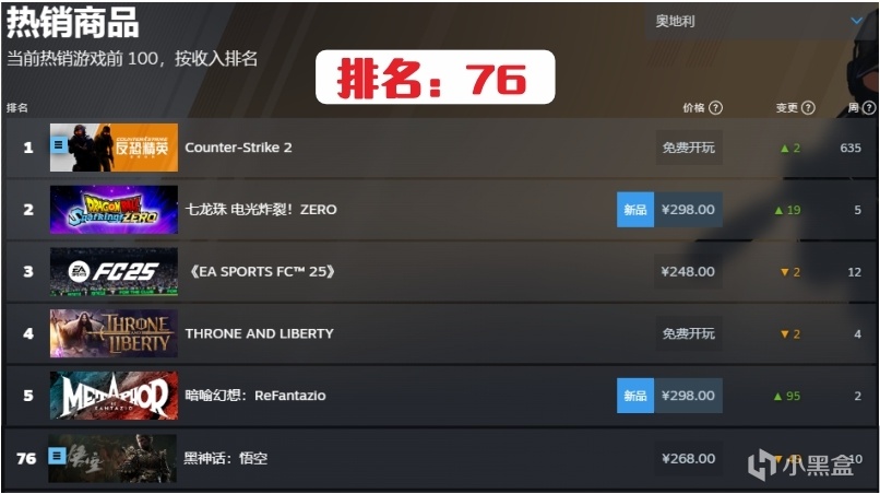 8.奧地利第76名,連續在榜時間10周