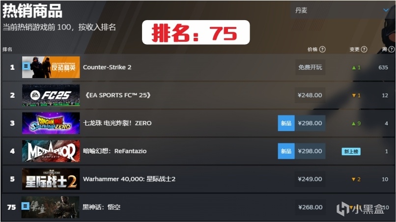 3.丹麥第75名,連續在榜時間10周