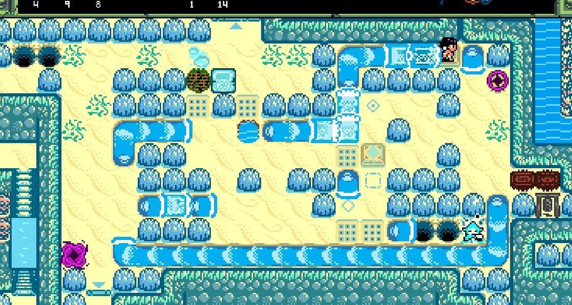 虽然在游戏的页面上介绍他是一款“类银河恶魔城/塞尔达传说游戏。”但是在我全收集通关后,我更愿意将他称为主体是类银河战士的游戏。他并没有传统意义上的数值成长,更多是通过徽章系统来提升自己的能力。其本身的地图设计也更偏自由,可以选择探索的区域非常多,也存在一定的破序设计,不过聊胜于无。他介绍中说的“类塞尔达传说”我想应该是指他游戏内有一定的解密要素,不过并没有传统俯视角2D塞的地牢迷宫。
