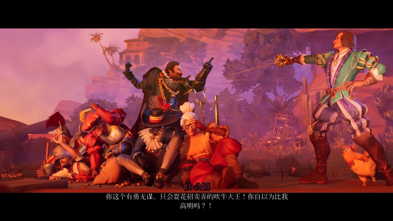 《击剑预备!》是一款由几个大学生开发的作品,听说这游戏甚至是他们的毕设作品,目前呈现给我的这种质量让我对他们感到未来可期。游戏背景是发生在中世纪的西班牙,是一款侠盗喜剧题材的剑术游戏,本作整体呈现出了一股浪漫主义的氛围,颇有一股罗宾汉式的侠盗故事。甚至还是百合?美术采用的是卡通风格,绘制出了古西班牙风情,很多场景让我幻视到一些经典电影的形象。
