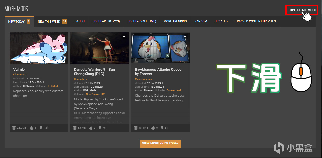 下滑点击 “EXPLORE ALL MODS” 探索所有MOD