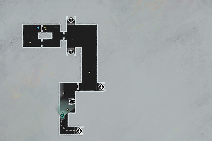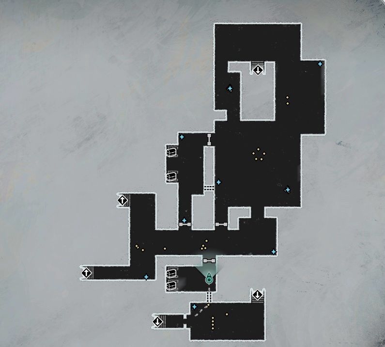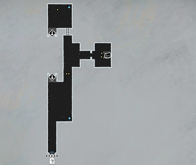 下面給大家附一下關於貝雷加回廊迷宮的具體地圖,方面大家探索和收集物品。(注:藍色亮點爲可以拾取物品,黃色爲怪物;圖中虛線部分爲去往其他房間的隱藏通道,需要注意的是有些通道需要在下一張地圖中才可以找到)