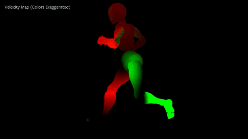 逐像素动态模糊(Per-pixel motion blur),基于现实逻辑实现,该方法会利用渲染过程中的空间转换矩阵以及深度图计算渲染结果每一帧像素在上一帧的屏幕位置,基于像素前后帧位置的距离以得到该像素移动的速度值从而得到速度图,最后根据速度图得到模糊效果。