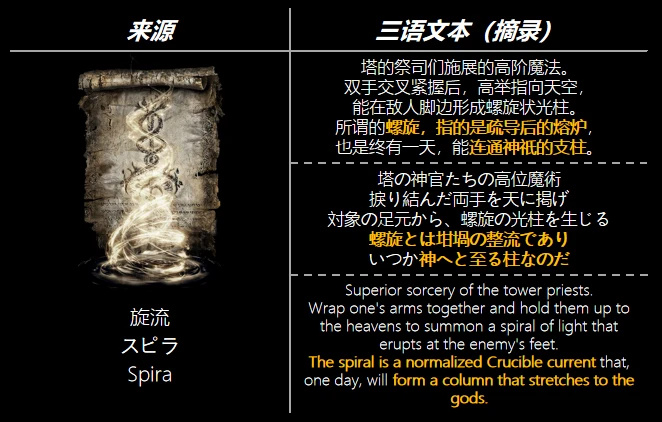 熔爐百相與神聖盧恩是對立但可以互通的存在,如何互通?角人的答案便是利用螺旋。而螺旋的意向除了角人,也將在許多物品中得以顯現。