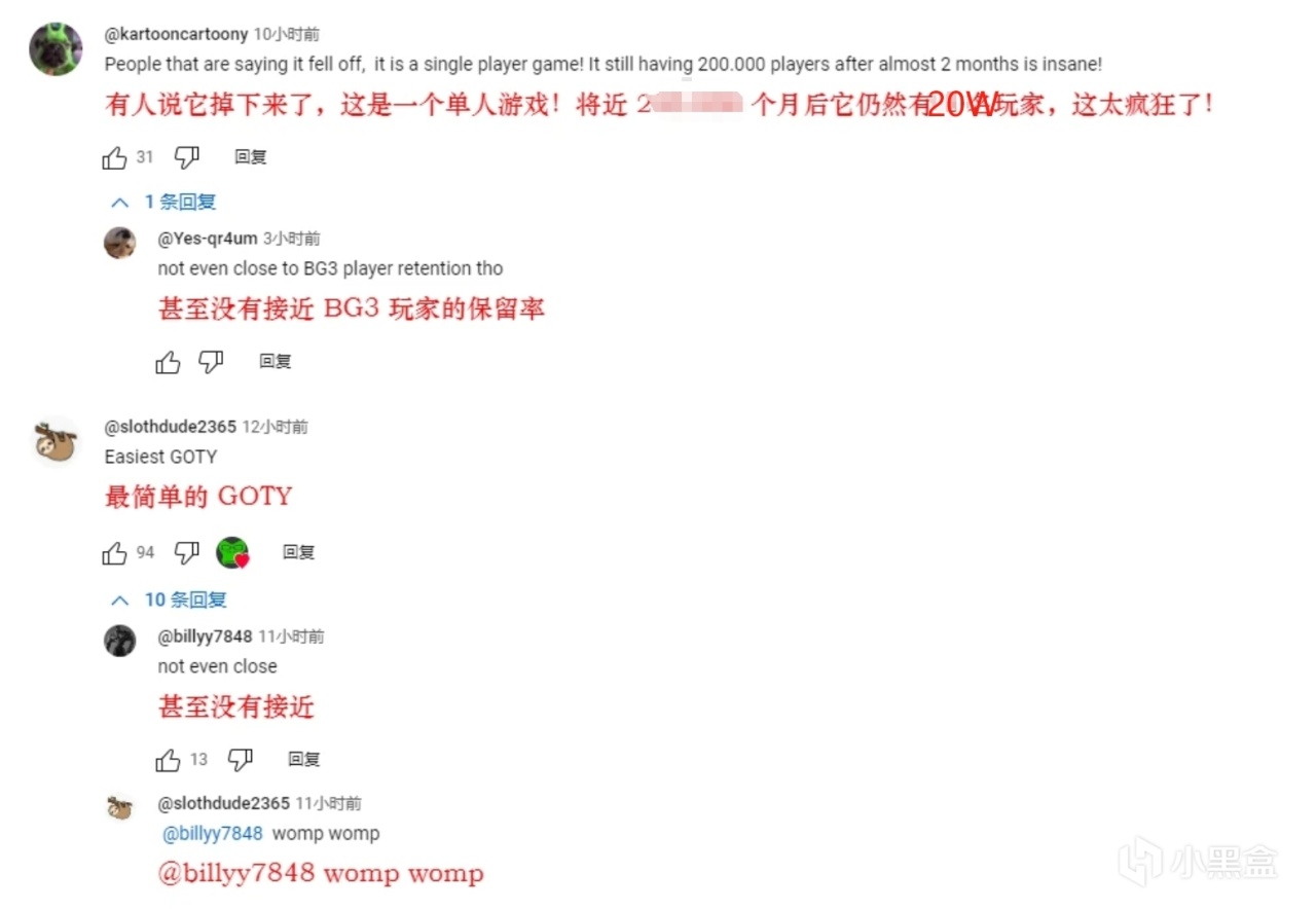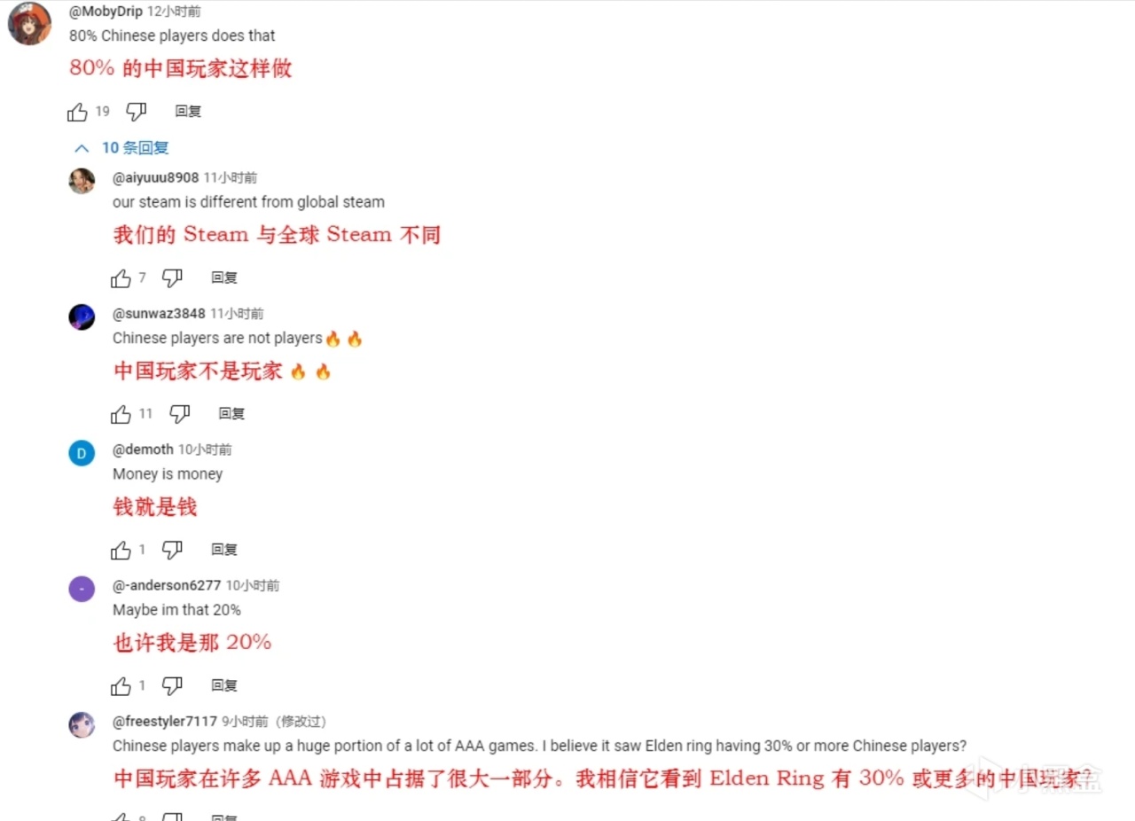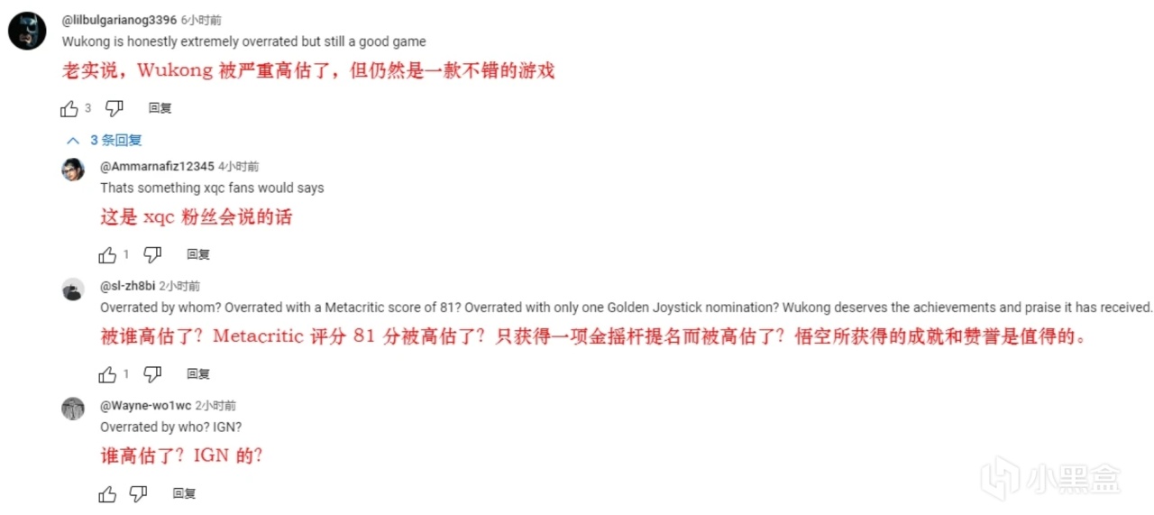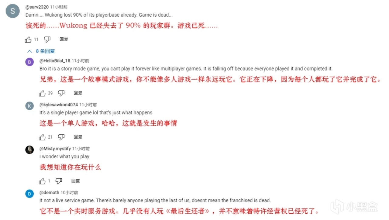 該視頻評論區討論熱烈,有人爲《黑神話:悟空》的留存率驚歎,也有人認爲這是狂熱的國區玩家導致(然後受到了反駁),不過還有人認爲《黑神話:悟空》“被高估”(被更激烈的反駁)