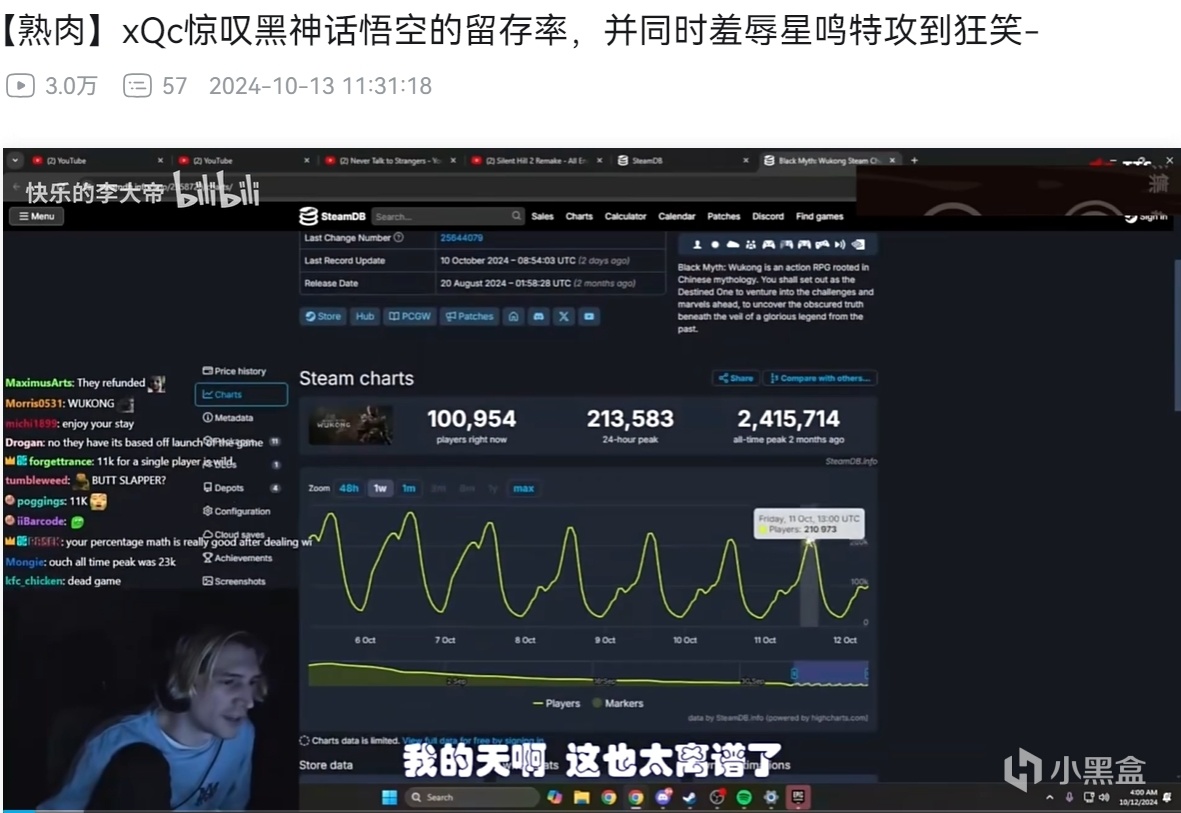 油管主播xqc也驚歎了《黑神話:悟空》的留存率